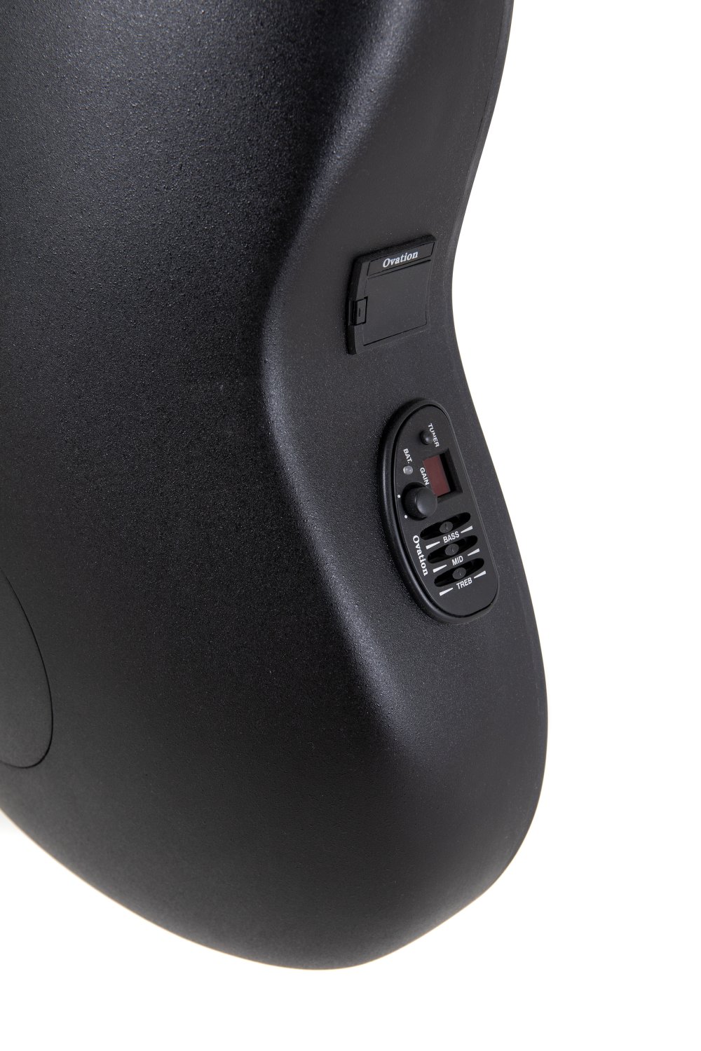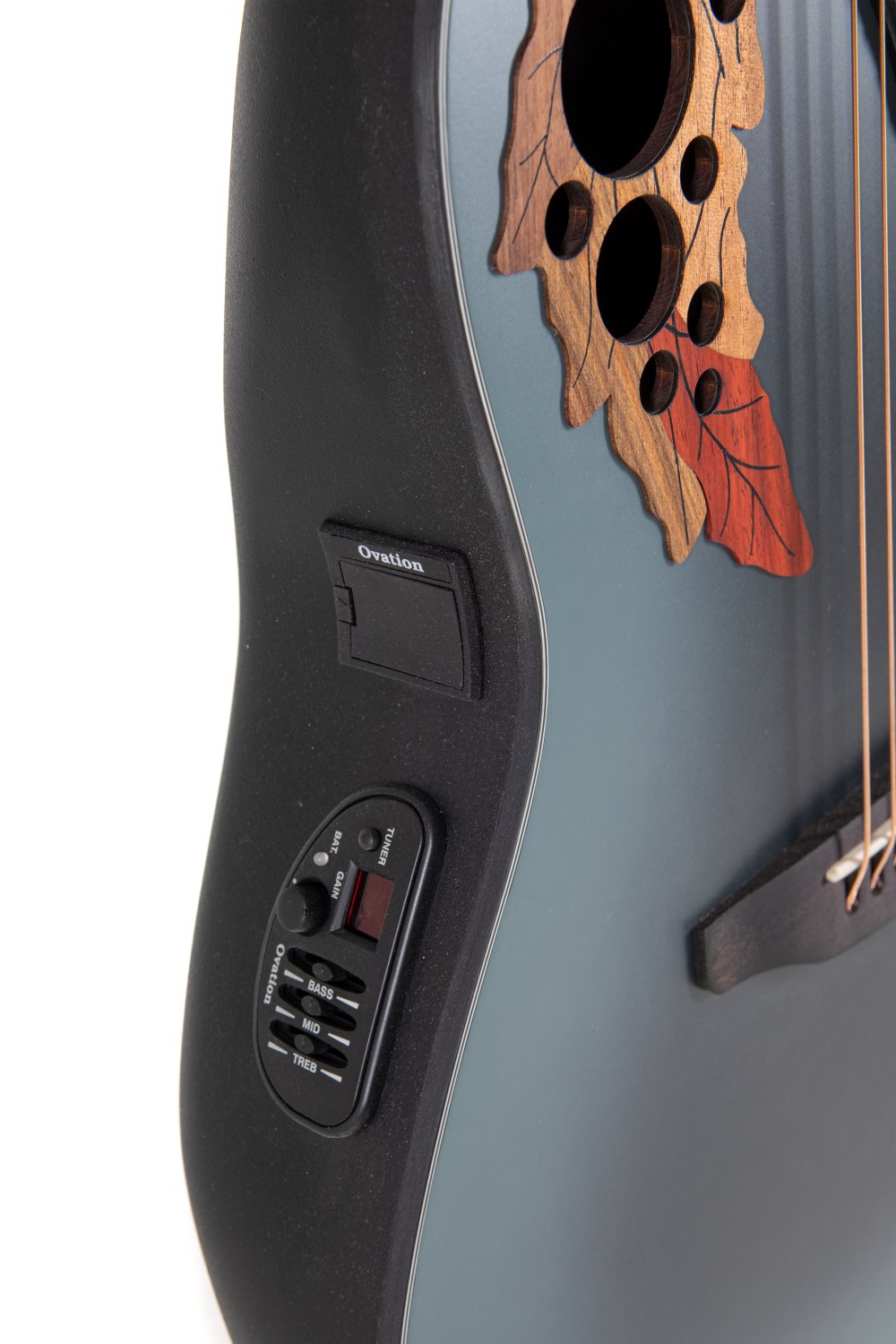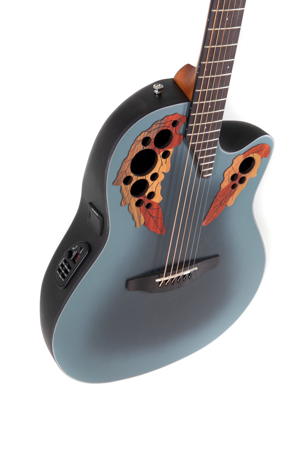 Solid Spruce top scalloped, quarter sawn X-bracingMulti sound holeMid-depth Lyrachord® bodyNato neck, fingerboard (with binding) and bridge OvangkolScale length 642 mm, nut width 42,8 mmMulti hardwood epaulettesPearloid dot inlaysBlack binding, multi-ply purflingsDie-cast Ovation machine heads, chromeOvation slimline pickup, OP4BT preamp with tunerItem Code: CE44-RBB