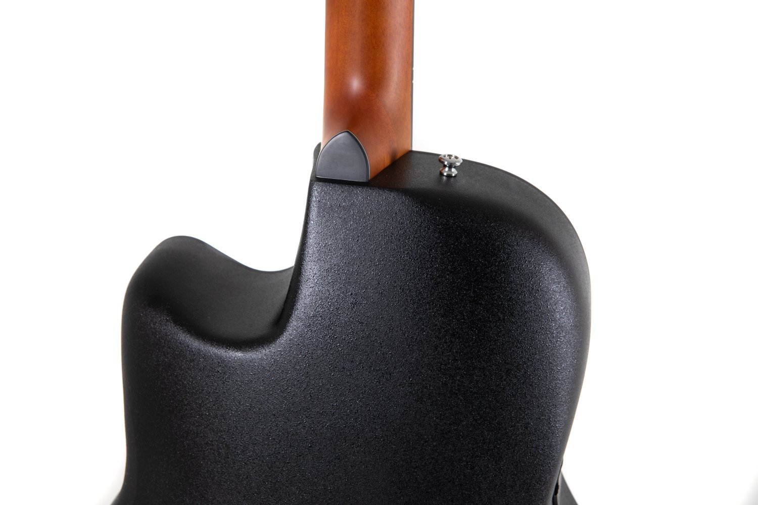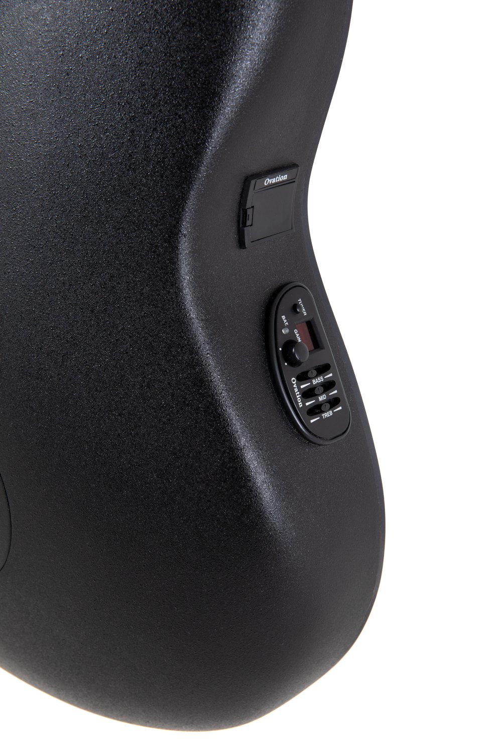 Selected figured top scalloped, quarter sawn X-bracingMulti sound holeMid-depth Lyrachord® bodyNato neck, Ovangkol fingerboard and bridgeScale 642 mm, nut width 42,8 mmMulti hardwood epaulettesAbalone-Dot-InlaysBlack binding with Abalone purflingDie-cast Ovation machine headsOvation slimline pickup, OP4BT preamp with tunerChrome Ovation logo and hardware Item Code: CE44P-8TQ