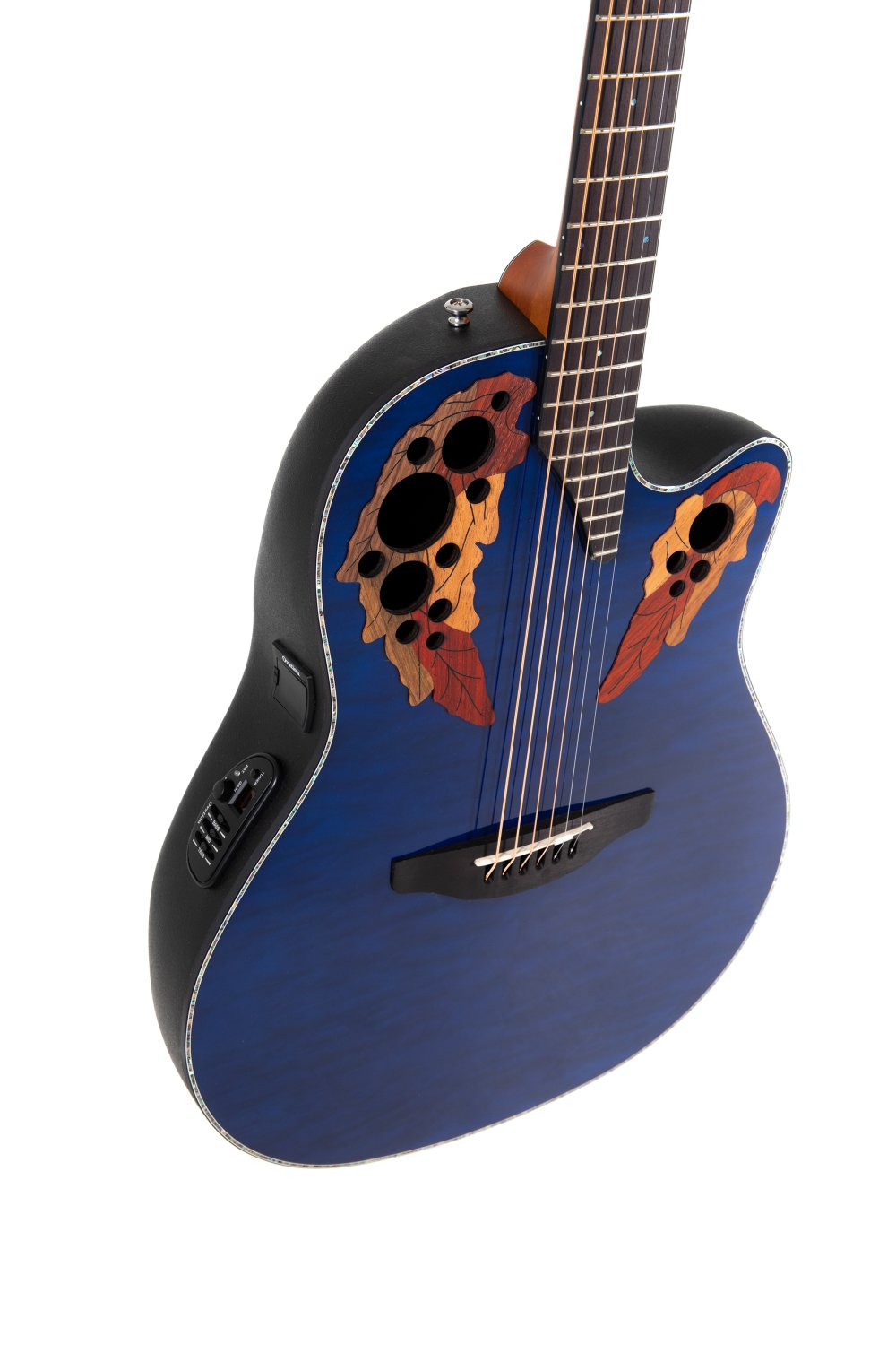 Ovation Celebrity Elite Plus E-Acoustic Guitar CE44P-8TQ, Blue Transparent Quilt