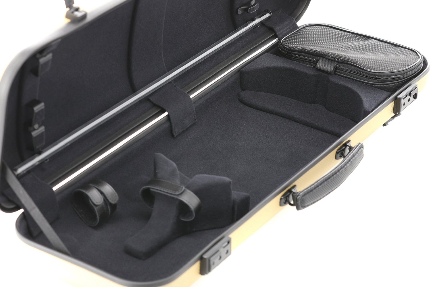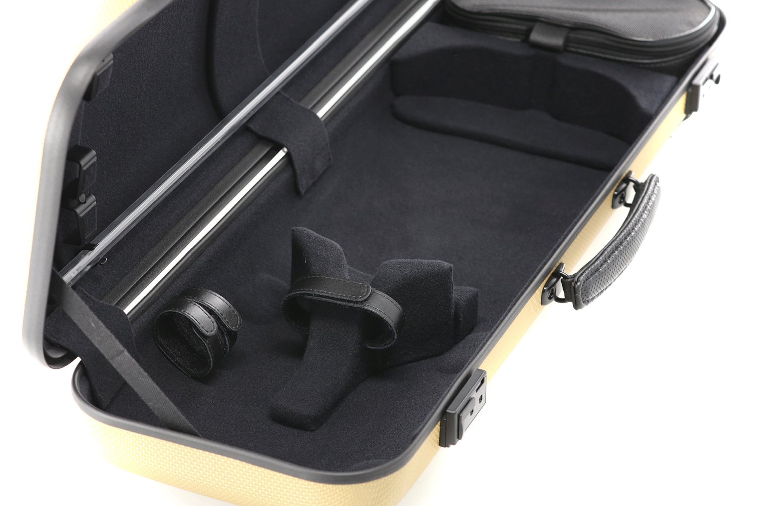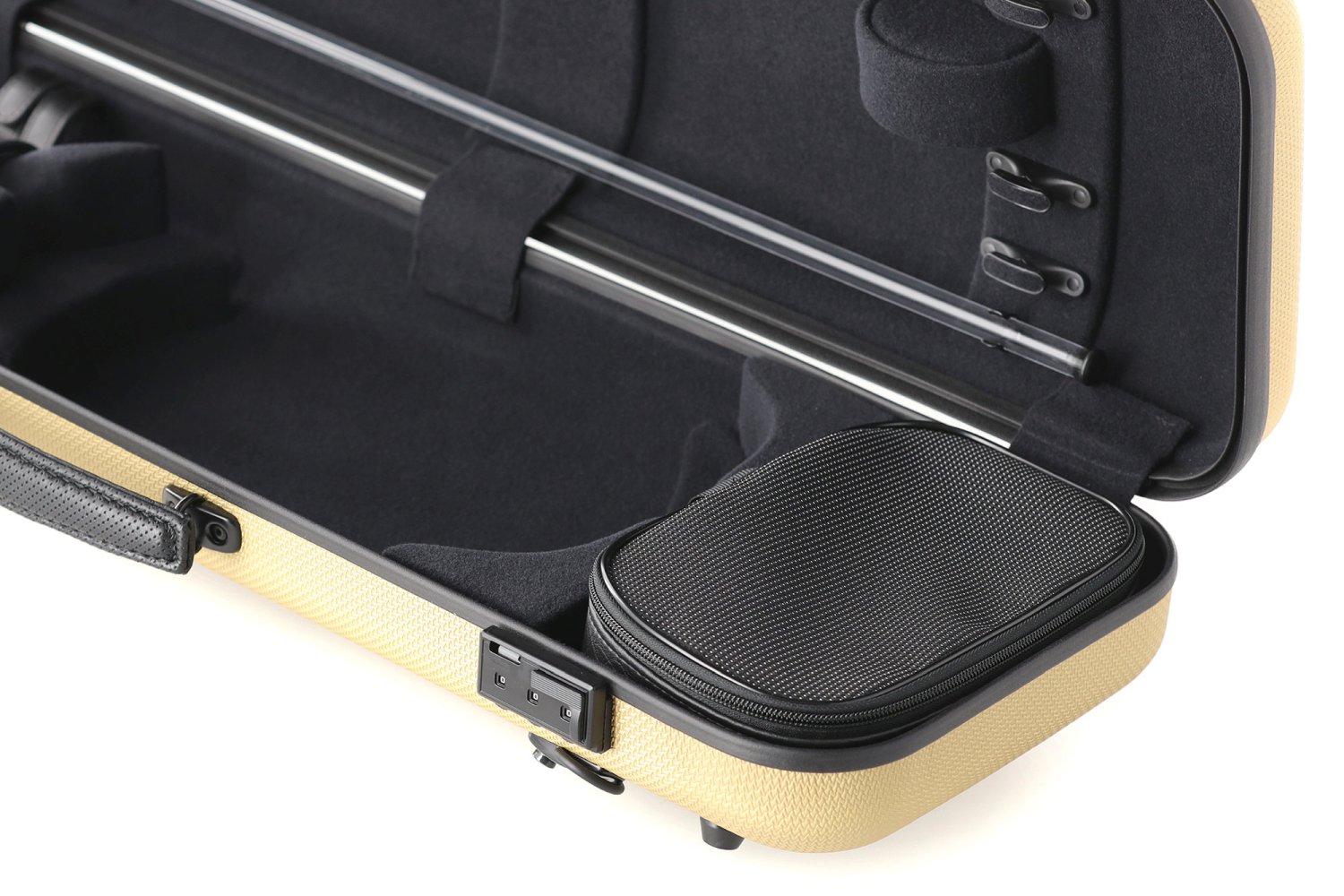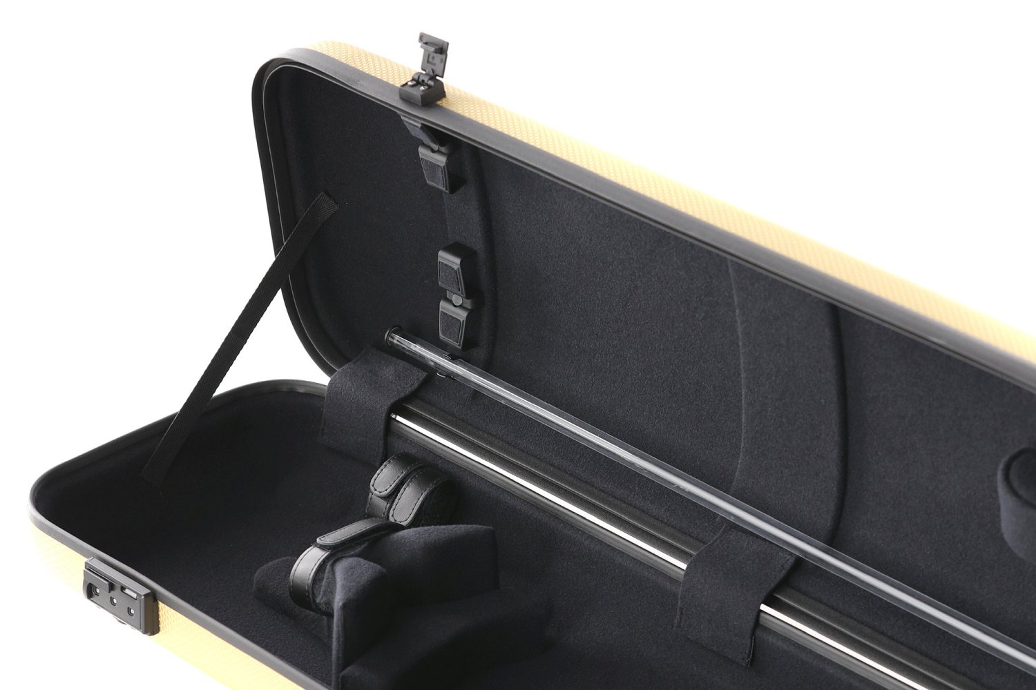 GEWA patented swivel bow holder at frog. Flexible bow bridge at the for more delicate protection for the tip.