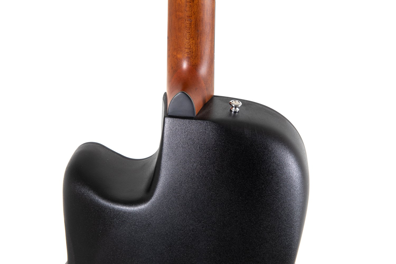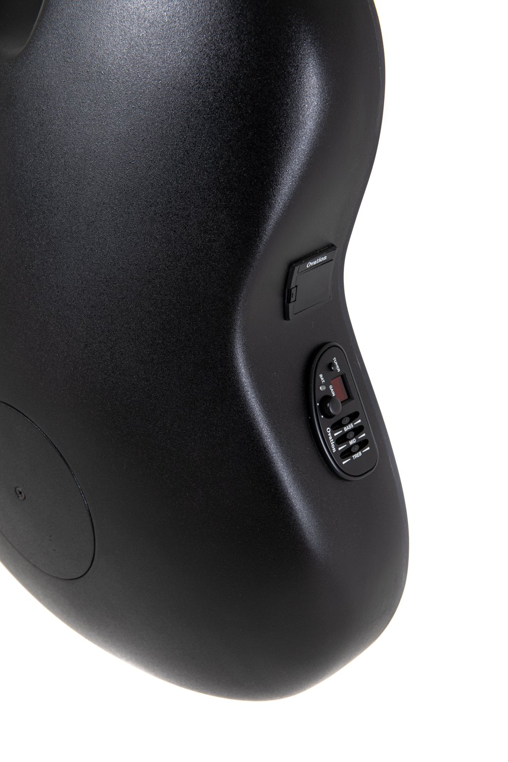 Solid Spruce top scalloped, quarter sawn X-bracingMulti sound holeMid-depth Lyrachord® bodyNato neck, fingerboard (with binding) and bridge OvangkolScale length 642 mm, nut width 42,8 mmMulti hardwood epaulettesPearloid dot inlaysBlack binding, multi-ply purflingsDie-cast Ovation machine heads, chromeOvation slimline pickup, OP4BT preamp with tunerItem Code: CE44-1