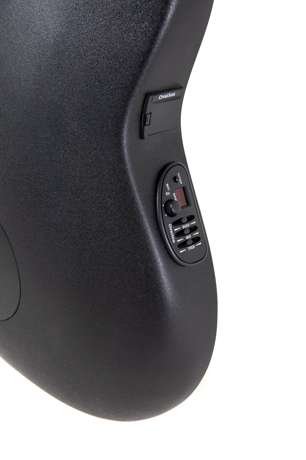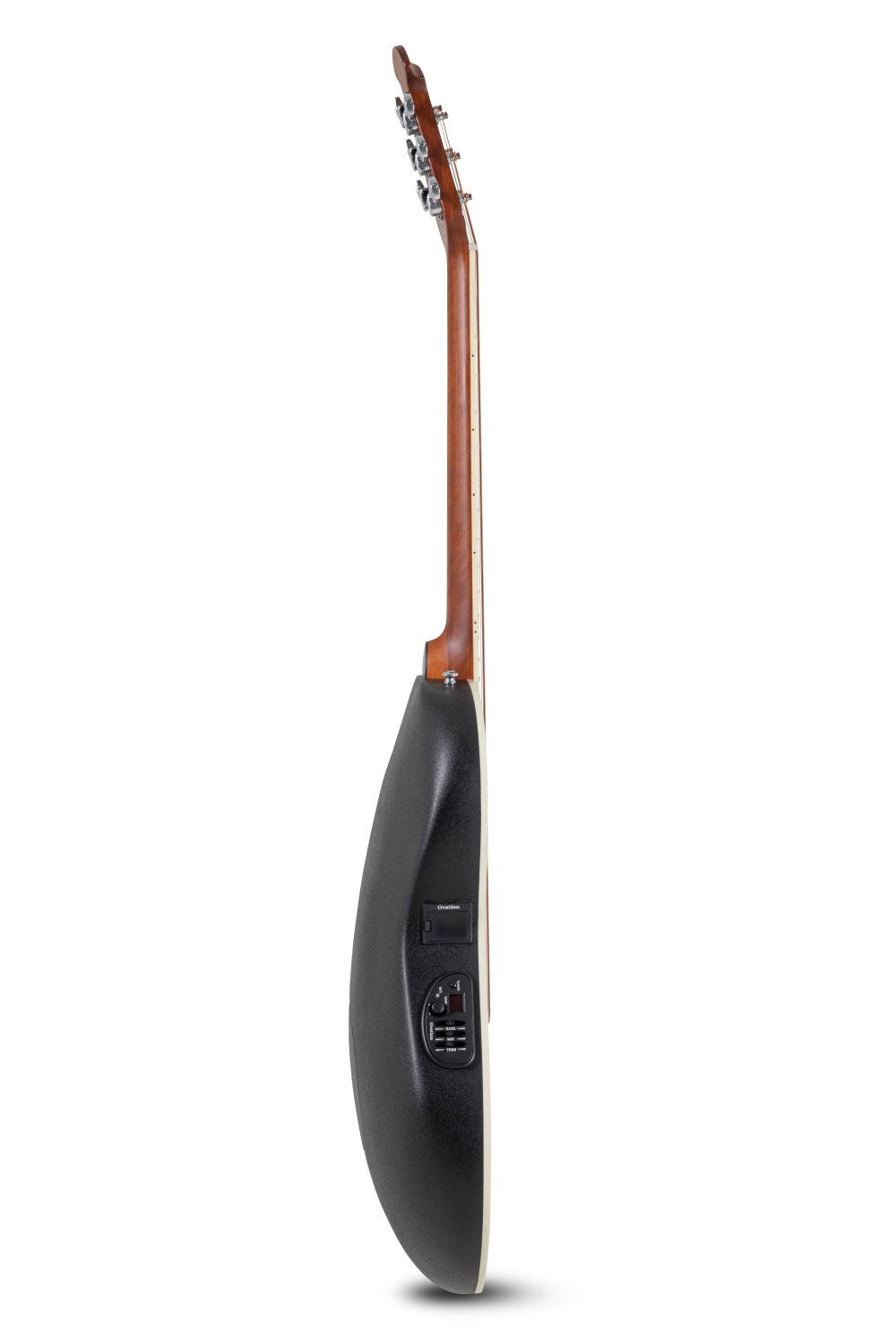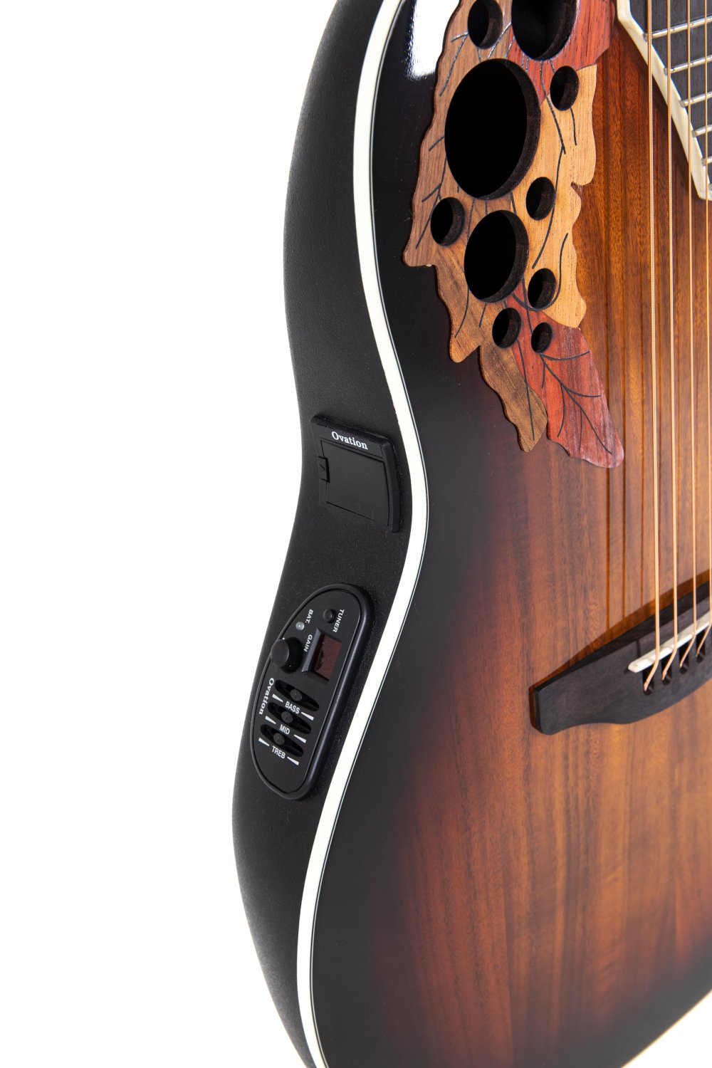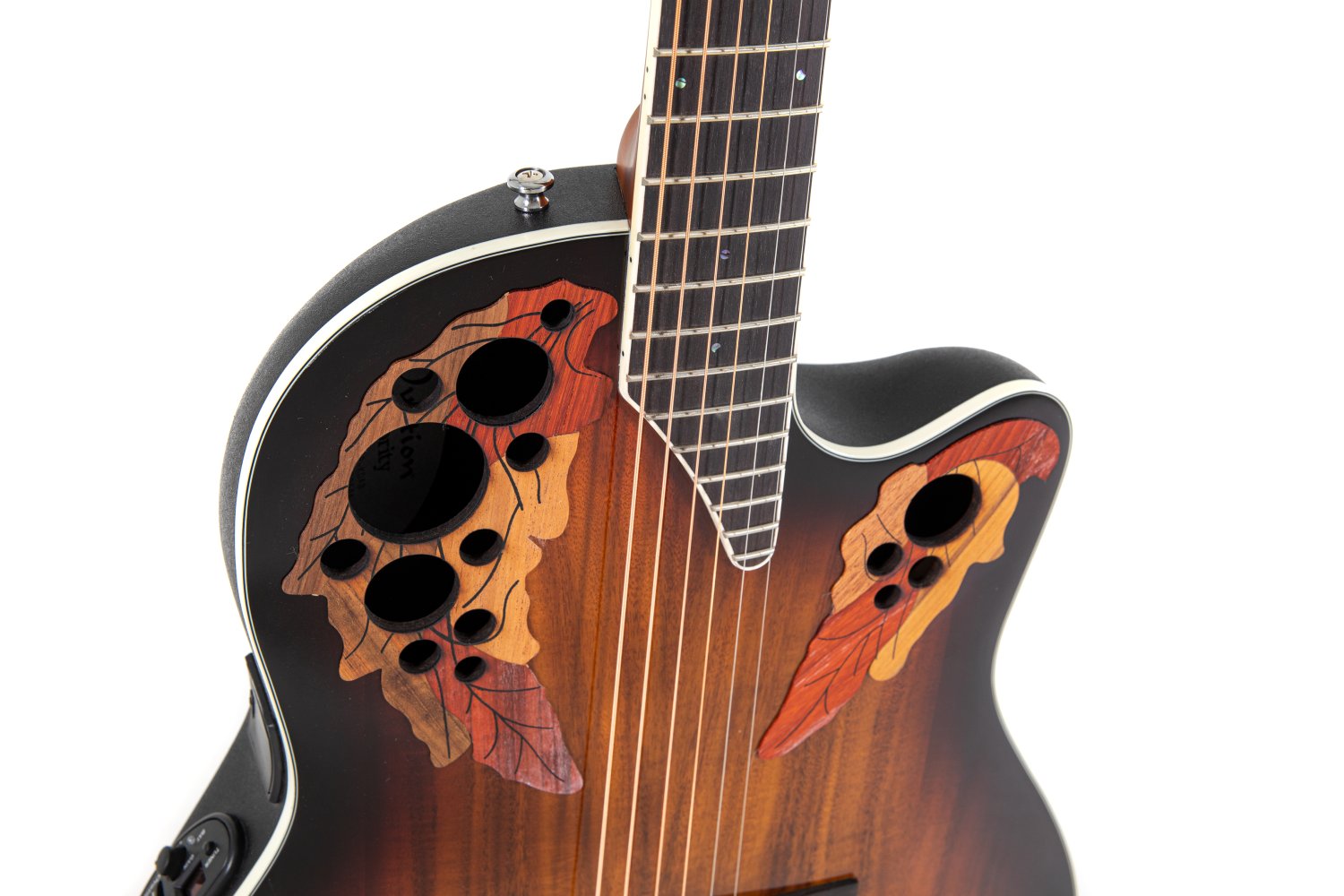 Not subject to CITESSelected figured top scalloped, quarter sawn X-bracingMulti sound holeSuper shallow Lyrachord® bodyNato neck, Ovangkol fingerboard and bridgeScale length 642 mm, nut width 42,8 mmMulti hardwood epaulettesAbalone-Dot-InlaysIvory white binding, multi-ply purflingDie-cast Ovation machine heads, chromeOvation slimline pickup, OP4BT preamp with tunerItem Code: CE48P-KOAB