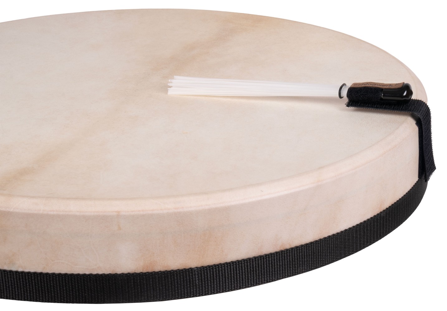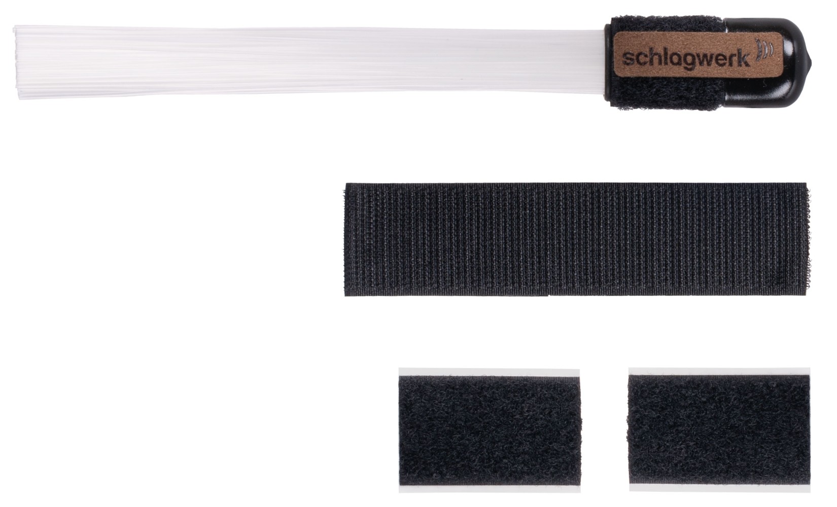 The mountable brush is not only suitable for cajons / framedrums, but can also be placed on the edge of the playing surface of almost any instrument. The fine, round nylon rods provide a very warm punch. The Velcro fastening means you have your hands free when you need them. The brush can be removed. Rubberized protective handle. Round semi-transparent nylon rods.